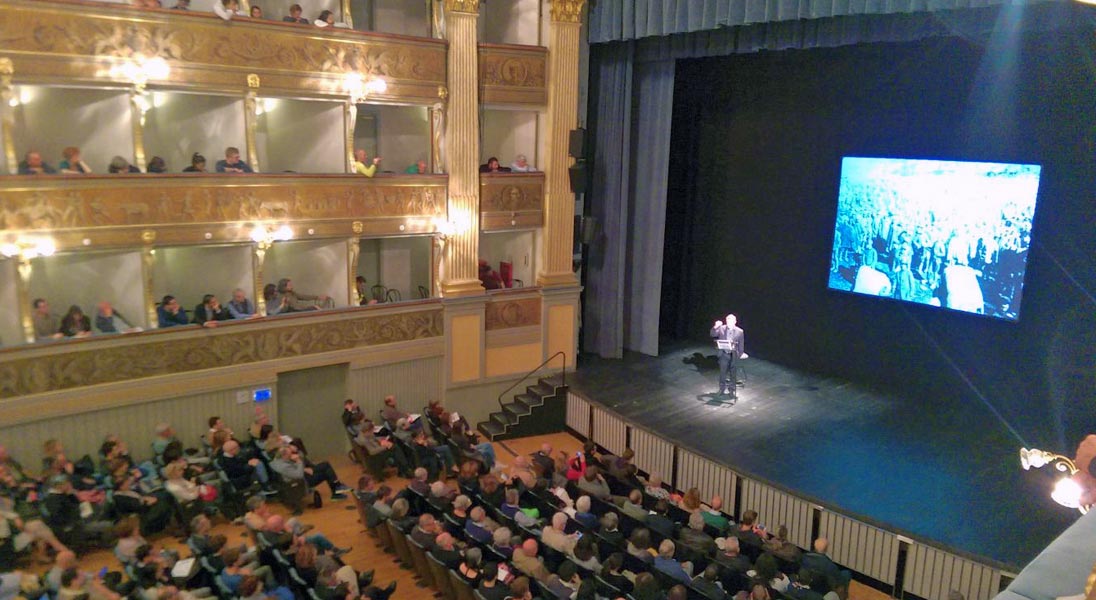 TEATRO SOCIALE PIENO PER LA PRIMA "LEZIONE DI STORIA"